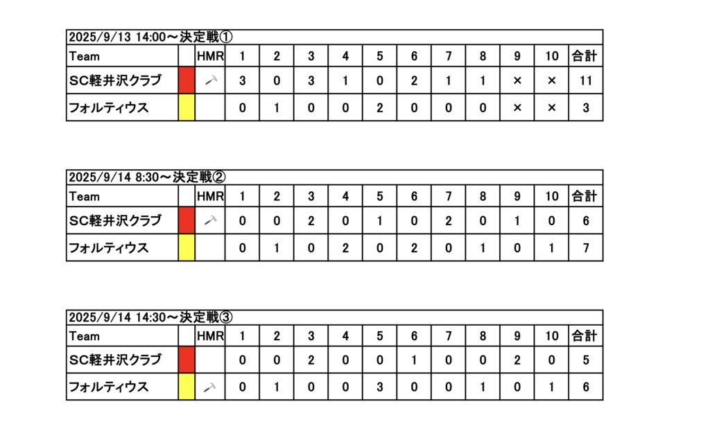決定戦は、予選での結果を持ち越す3戦先勝方式の中、SC軽井沢クラブと2勝同士で並ぶも、最終戦では接戦の末フォルティウスが勝利しました。