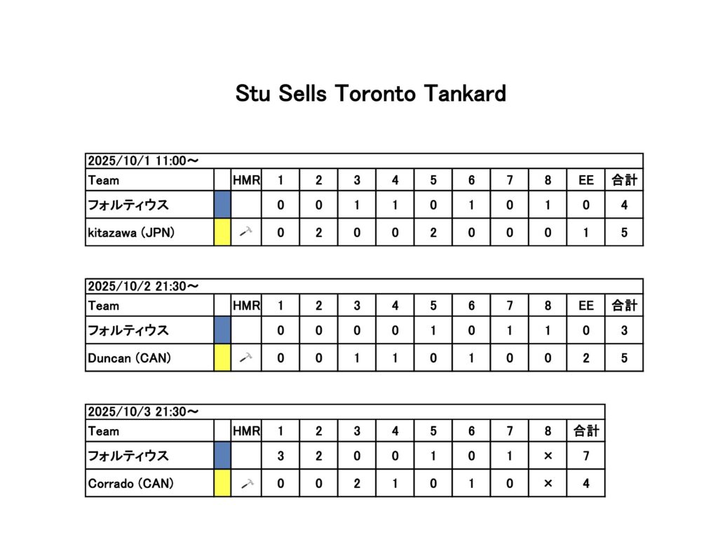2025年10月1日〜6日に開催された「Stu Sells Toronto Tankard」に出場しました。